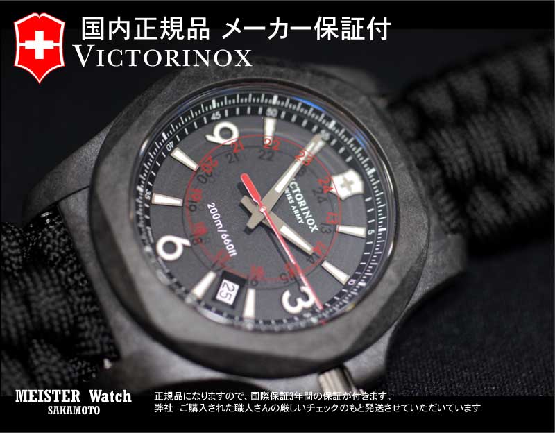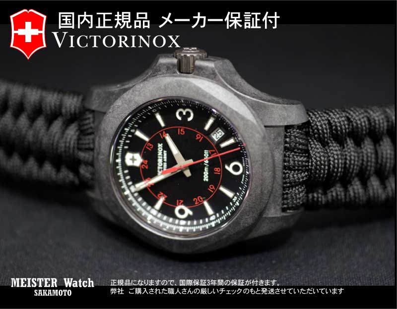 国内正規品VICTORINOX【ビクトリノックス【INOXイノックス】【カーボンケース】【I.N.O.X. CARBON】戦車が踏んでも壊れない腕時計 【ブラックパラコードブレス】【241776】【ブラックラバーストラップ付き】