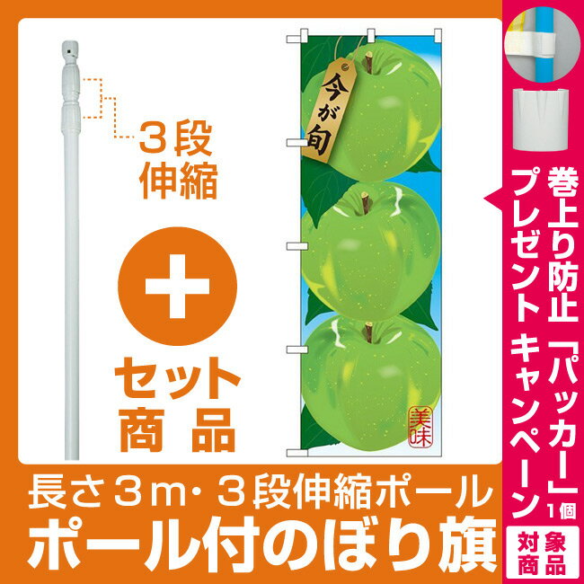 【プレゼント付】【セット商品】3m・3段伸縮のぼりポール(竿)付 のぼり旗 りんご 青 (イラスト) (SNB-1439)