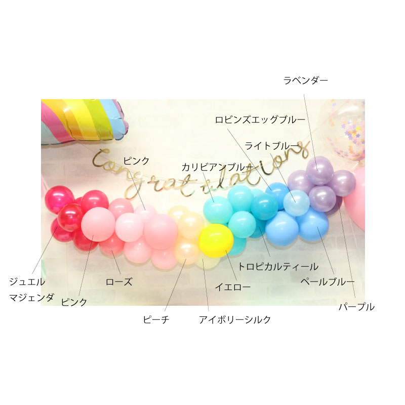 ■内容 バルーン ・5インチバルーン ラベンダー 6ピース ロビンズエッグブルー 2ピース パールライトブルー 2ピース カリビアンブルー 5ピース トロピカルティール 2ピース アイボリーシルク 3ピース ピーチ 4ピース ピンク 4ピース ローズ 3ピース ジュエルマジェンダ 4ピース ・9インチバルーン パープル 1ピース ペールブルー 2ピース イエロー 1ピース ピンク 2ピース 紐 約3メートル バルーンガーランドの作り方説明書 ※バルーンは全て膨らませる前の状態でのお届け ※バルーンにまれに目視では確認できない穴があいている場合がございます。