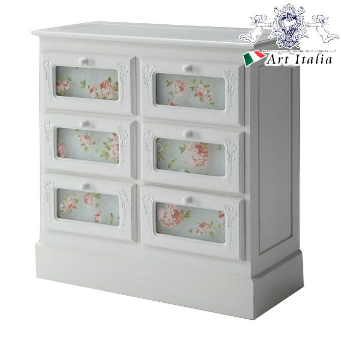 \50%OFF/ CAVA 薔薇の6Dチェスト アウトレット家具 OUTLET アンティーク調家具 ロココ調 アンティーク調 ヨーロピアン クラシック 姫系 白家具 収納家具 彫刻 薔薇家具 デザイン