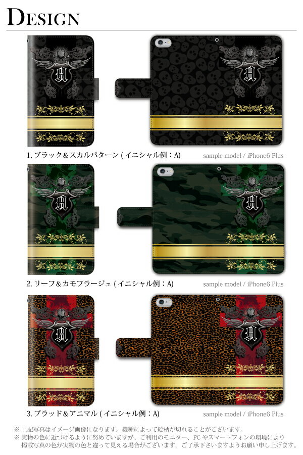 クールでかっこいいスカル(ドクロ 骸骨)のイニシャル(頭文字)デザインの 手帳型 ダイアリーケース。